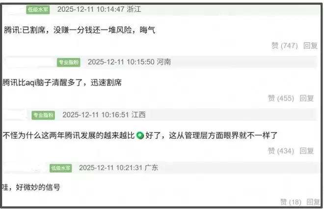 鹅厂这番迅速割席的操作很快引发热议,在很多人看来,鹅厂比桃厂清醒多了。面对风险艺人,鹅厂迅速做出了割席的行为,桃厂却还在用各种方式试图挽救风险。这两年鹅厂的发展比桃厂好许多,也许就是因为管理层眼界不一样吧。与此同时,大厂割席的行为也像是一个微妙的信号,虞书欣的处境可能越来越艰难了。