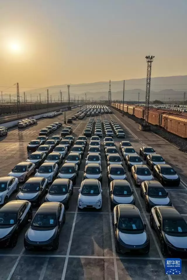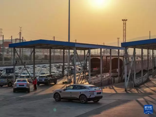 11月29日,在重庆果园港国家物流枢纽铁路货运鱼嘴站商品车物流基地,“重庆造”新能源汽车停放在专列内。 近年来,随着重庆内陆开放综合枢纽建设不断提速,越来越多的“重庆造”汽车沿着出海大通道走向世界。当前,重庆在纯电动、插电式、增程式、氢燃料、换电式等多种技术路线全面布局汽车产业,不断完善的产业链条、持续提升的产品品质、渐趋稳固的供应链体系等,成为支撑“渝车出海”的重要因素。 重庆海关日前公布数据显示,今年前10个月,重庆汽车出口402.2亿元,同比增长13.6%。其中电动汽车出口116.5亿元,同比增长72.1%。 新华社记者 黄伟 摄