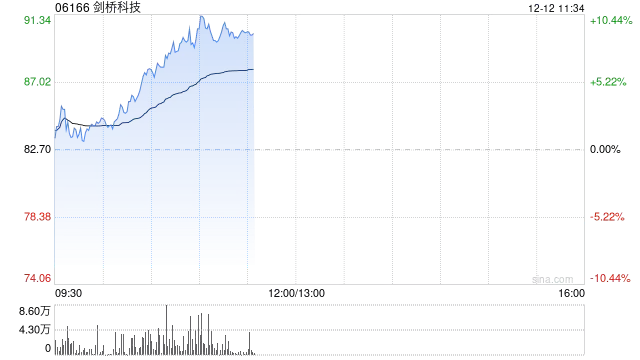 剑桥科技(01666)早盘股价大涨8.95%,现报90.10港元,成交额达1.82亿港元。