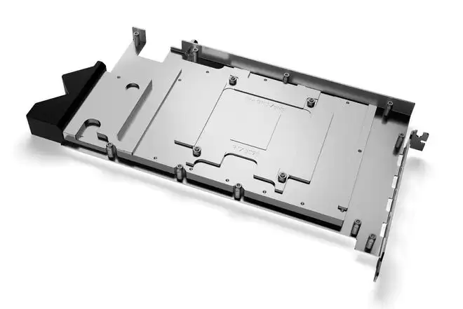 EK-Pro GPU Zotac RTX 5090采用全覆盖设计,三维尺寸为264×124×20毫米。其底座采用CNC工艺铣削铜材,顶部则为激光切割不锈钢,并配备了EPDM密封圈和黄铜支架。水冷头的进出水口采用45度倾斜设计,包含2个G1/4"螺纹接口。