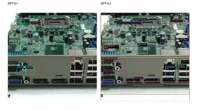 GPT‑5.2与GPT-5.1的视觉能力对比。