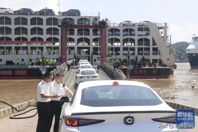 6月27日,在重庆果园港滚装码头,重庆海关所属重庆港海关关员在监管出口整车。新华社发(罗智文 摄)