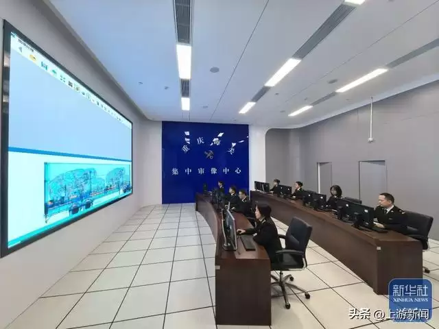 12月4日,重庆海关所属重庆港海关关员在集中审像中心审看即将出口的新能源汽车图像。新华社记者 黄伟 摄