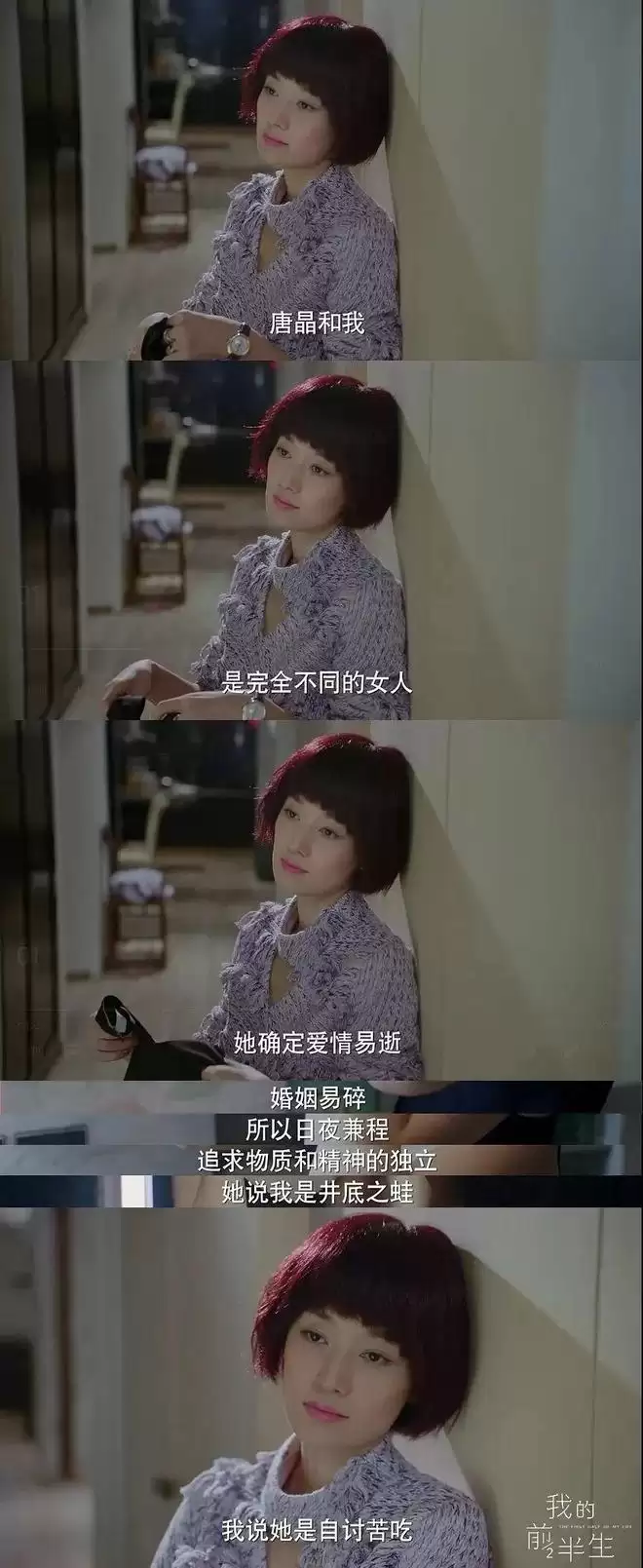 尽管如此,她还是得到贺涵的表白,得到他的爱。在情感上打败了唐晶,重塑了自己的自信心,这也可以算是罗子君的成长吧。