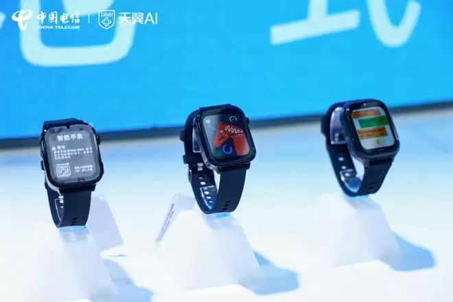 数智科技生态大会现场还展出了集成天翼AI能力的智能手表,凭借精准的健康监测、运动分析、跌倒检测及一键SOS功能,为用户构建起覆盖日常健康与应急安全的双重守护屏障。