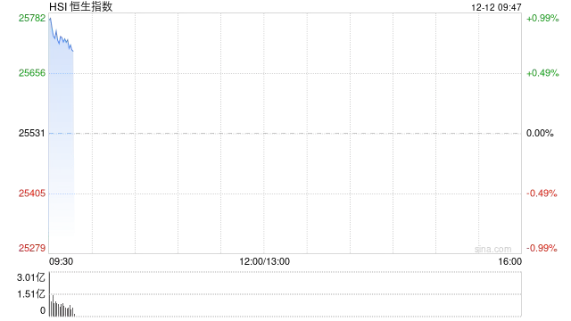 12月12日消息,港股三大指数高开高走。截至午间收盘,恒生指数涨1 36%,报25878 49点,恒生科技指数涨1 45%,国企指数涨1 17%。盘面上,科网股普涨,联想、小米、网易涨超2%,美团、