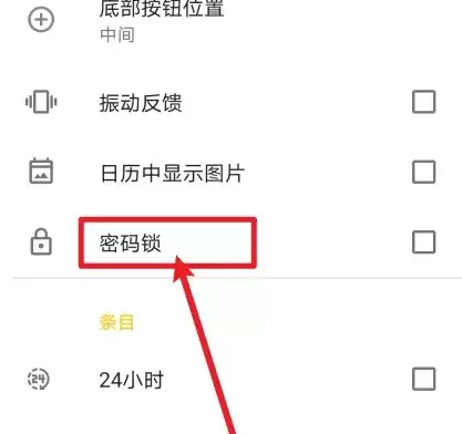 进入设置页面后,直接点击【密码锁】选项,然后按照屏幕上的指引完成密码的创建与确认,即可成功开启密码保护。