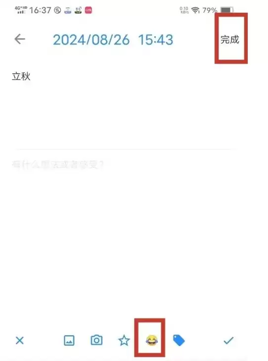 第四步:选择好心情后,别忘了点击右上角的【完成】按钮进行确认。这样,你的心情标签就成功添加至日记中了。