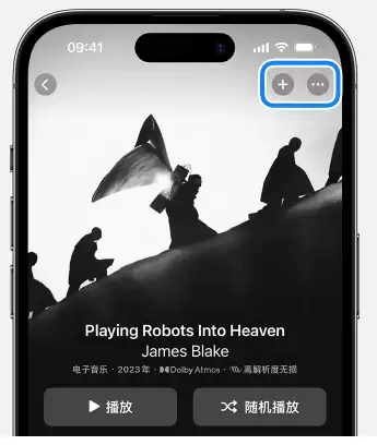 3. 在专辑或播放列表的顶部,轻点“添加”按钮。