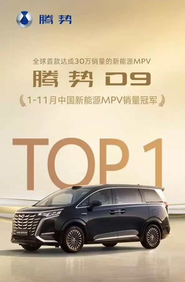 腾势D9再度登顶:1-11月新能源MPV销冠,累计售出84549辆