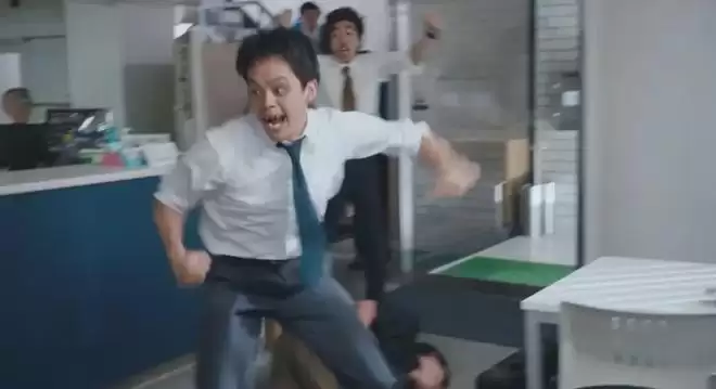 也正因为这种社会性/动物性是以二元补衬的结构存在,才使得影片中一些异质性因素的并置,并不显得突兀。比如漫画的热血中二,与现实的冷酷无情。宫本内心强大、自信、执着,但现实中却是一个智力、体力都平常的小人物。