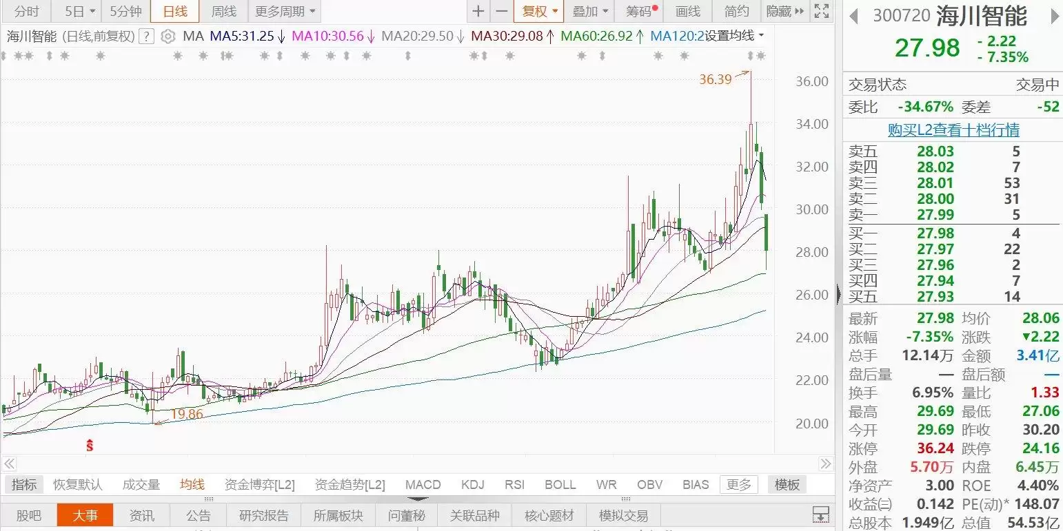 A股异动|海川智能一度跌近10%,两股东拟减持清仓