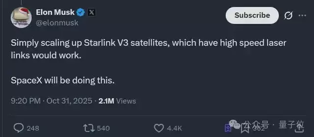 后又在谷歌宣布太空数据中心计划时留下“Interesting”这样的评论,明确肯定了谷歌的眼光。