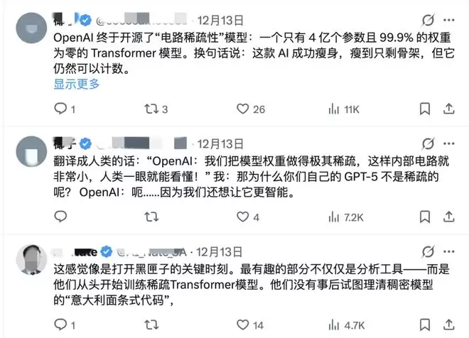 智东西12月15日报道,昨天,OpenAI开源新模型Circuit-Sparsity,模型参数量仅0.4B,99.9%的权重为零。