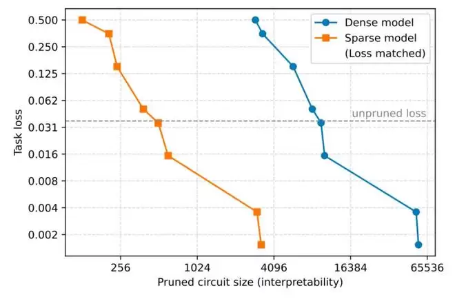 ▲稀疏模型的电路规模比密集模型小了16倍(图源:OpenAI技术论文)