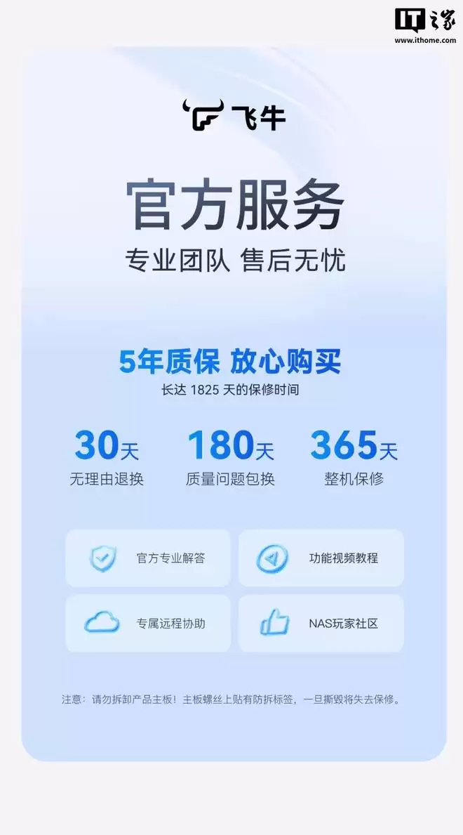 此外,这款 NAS 搭载 fnOS,支持 NFS、SMB、WebDav 等挂载协议,拥有应用商店,可随意安装百款 App,内置虚拟机功能,支持一机多用,自带终身免费远程访问服务,随机附赠 5 年 12mbps 高速流量,价值 495 元。