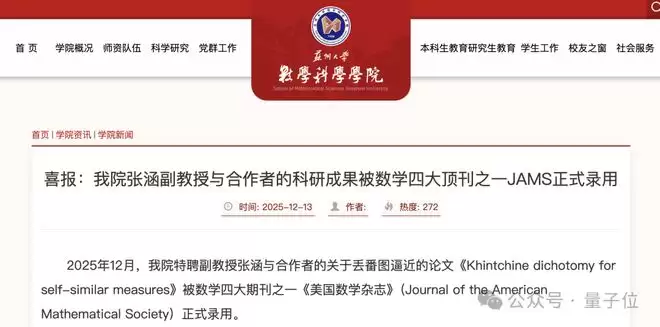 中国学者又一篇数学四大刊成果出炉,还是苏州大学的首篇四大刊成果。