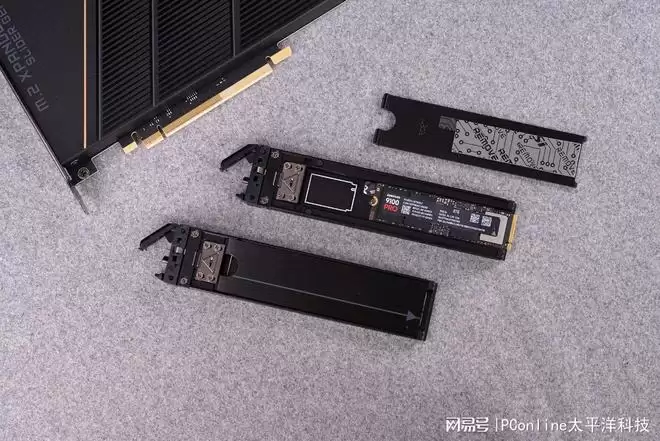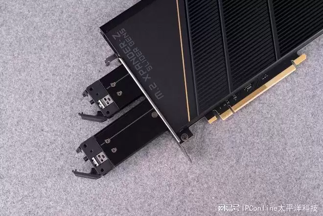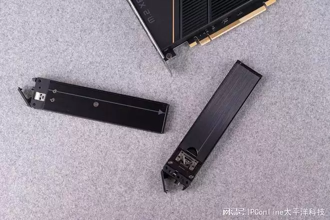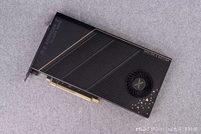 配件里最大块的当属那张PCIe 5.0速率的M.2扩展卡,采用全金属外壳设计,看起来就像是一张迷你显卡一样。