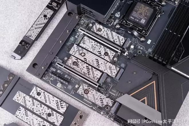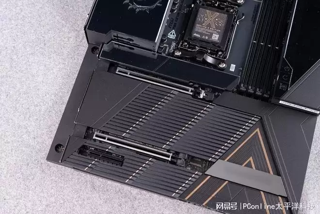 揭开以后你就可以看到微星MEG X870E GODLIKE X EDITION超神的两颗南桥芯片,与上代的X670E一致,并且相比X870芯片,X870E的扩展性会更强。