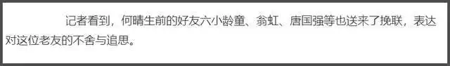 当天还有不少圈内明星到场悼念,从何晴好友等人的采访也能看出来,何晴生病之后,圈内朋友和邻居给了不少帮助,何晴还曾打电话给好友王卫国,要他送她去医院。