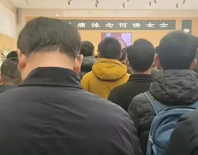 也有网友曝光何晴告别式的画面,当天去了不少人,告别厅都站不下。现场还播放着何晴生前的角色照合集。