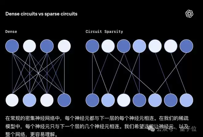 这是一种通过人为约束模型内部连接的稀疏性,让模型计算过程可拆解、可理解的大语言模型变体,本质上是为了解决传统稠密Transformer的黑箱问题,让内部的计算电路能被人类清晰解读,知道AI是如何做决策的,避免轻易相信AI的胡话(doge)。
