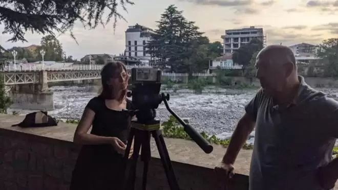 玛丽亚姆:是的,我认为电影在很大程度上也是关于文化的。比如在我们之前的影片《当我们仰望天空时看见什么?》中,我们是在库塔伊西(ქუთაისი)拍摄的。大约五十年前,这座城市只经历过零星几次电影拍摄,之后很长时间里几乎没有再被影像记录。而当我们最近几年回到那里时,城市已经发生了彻底的变化。我觉得电影在某种意义上有点像建筑,它能够保存某些东西。这些故事、这些影片,对于保留地方的痕迹和社会的片段来说非常重要。影片中出现的人,比如那位老人,或许在几年后就不再存在了;而关于这座城市的故事,也可能随之消失。