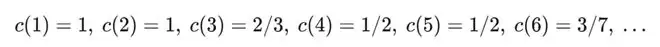 数据虽少,但已足够让他大胆猜想:c(k2)=1/k。
