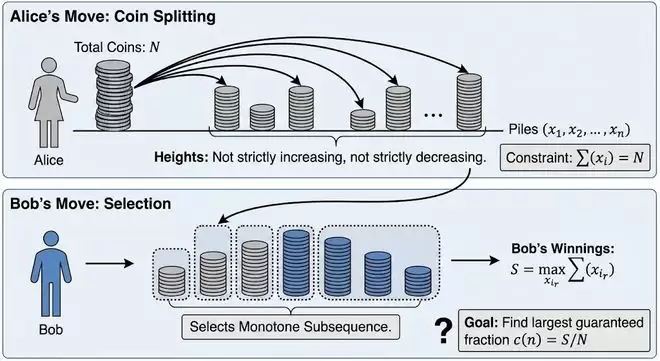 问:无论Alice怎么分堆,Bob至少能拿到总硬币数的多少比例?