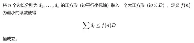 理由:对任意序列,可构造一系列正方形,它们互不重叠地填满边长为S(x1,…,xn)的大正方形。