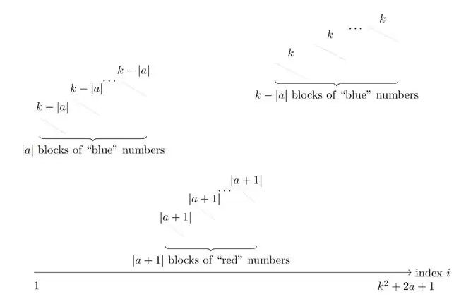 并构造出极值序列:用「红」「蓝」两种数值的块交替排列,控制单调子序列的长度。