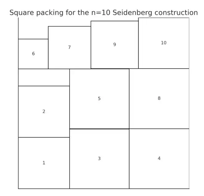 下图展示了从AlphaEvolve给出的一个序列构造出的正方形填充。