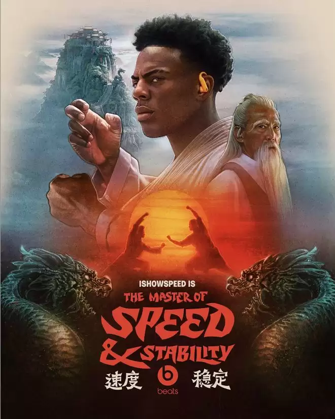 据了解,这部短片由英国导演Daniel Wolfe执导,故事围绕着IShowSpeed佩戴Powerbeats Pro 2耳机,沉浸式研习中国传统功夫,并远赴地球另一端拜师学艺的奇遇展开。其师父一角由成龙特技团队的资深成员易天雄饰演,两人共同演绎了一场跨越文化的功夫特训,以此回应网络质疑者的偏见。此外,曾获格莱美提名的音乐人Adrian Younge特别为此短片创作了原声配乐。