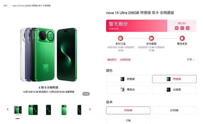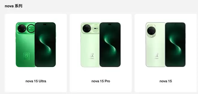 据了解,nova 15系列将推出nova 15、nova 15 Pro以及nova 15 Ultra三款机型。其中标准版nova 15延续了上代的设计语言,正面采用单挖孔屏幕,提供12GB+256GB和12GB+512GB两种存储版本,并带来带感绿、好搭紫、零度白、幻夜黑四款时尚配色。