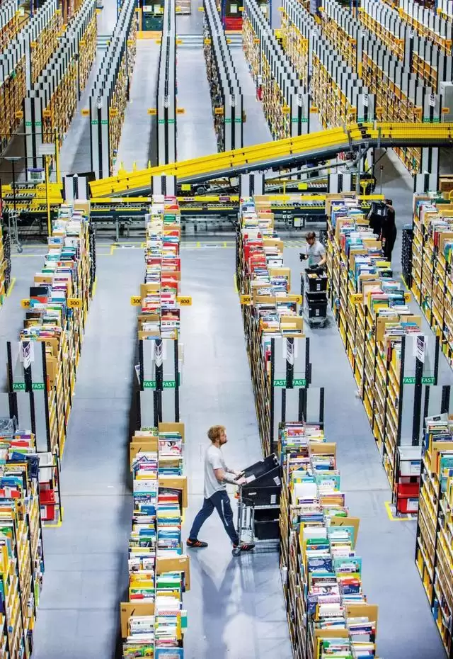 亚马逊员工在一处仓储中心内备货。本文图/视觉中国