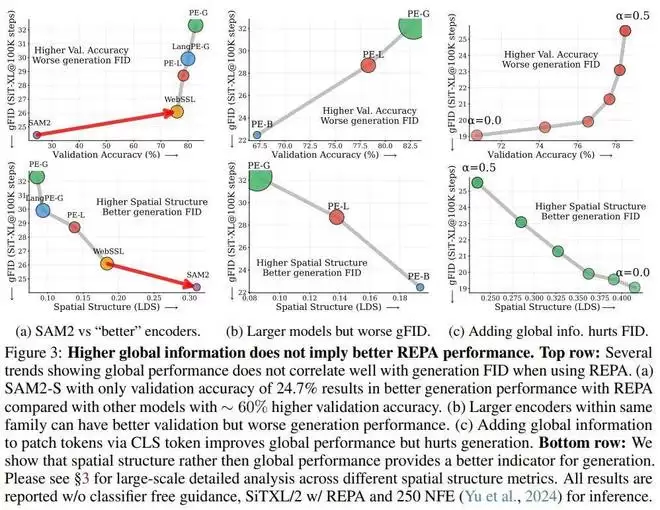 而对于 REPA,也有一个类似的问题:全局信息空间结构,哪个对表征对齐更重要?