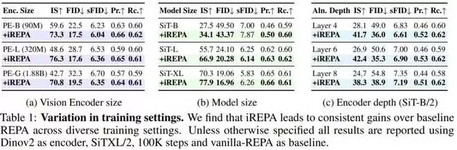 iREPA 的有效性并非仅停留在理论层面,作者通过一系列大规模实验,证明了这一改进方案具有极强的鲁棒性和通用性。