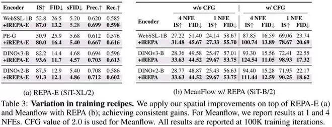 iREPA 并不仅限于特定的 Transformer 架构,它能无缝集成到各种现有的先进训练流中.