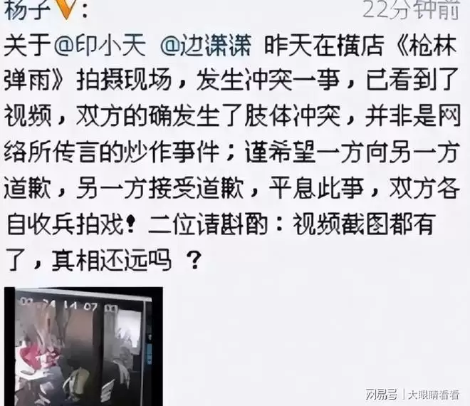 就在舆论对印小天愈发不利的时候,杨子公布了一段监控视频,还希望印小天能够出面向边潇潇道歉,称自己手里有完整的证据。