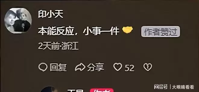 他在宋先生的帖子下留言:“本能反应,小事一件。”