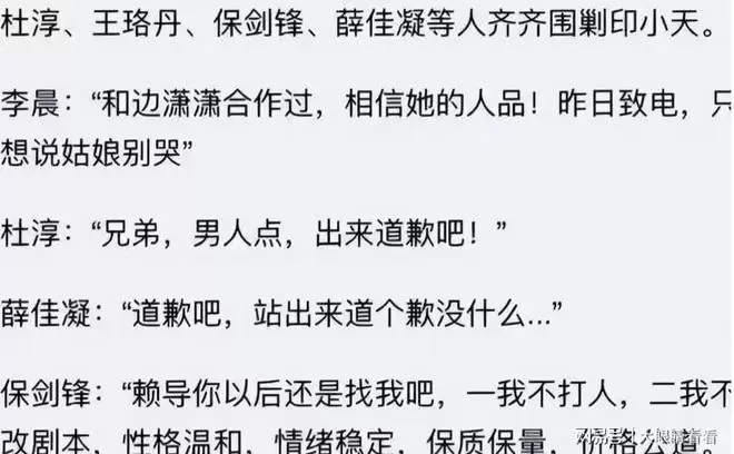 紧接着,贾乃亮、李小璐、李晨、保剑锋等将近半个娱乐圈的人都开始为边潇潇发声。