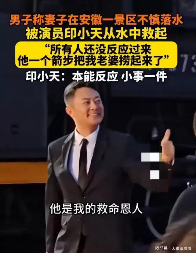在场游客尚未反应过来之际,正在景区游玩的演员印小天毫不犹豫地跃入水中。