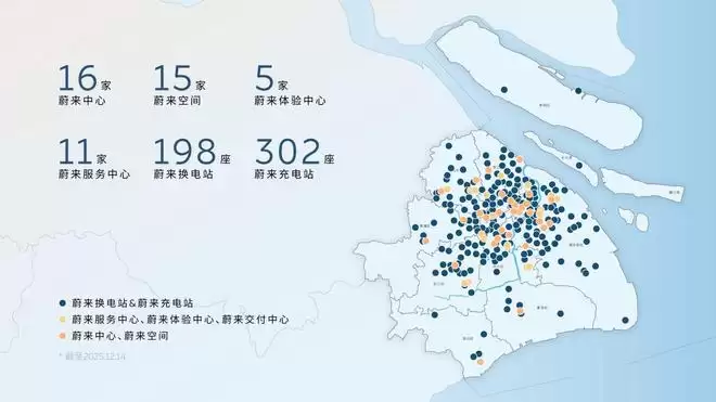 最新数据显示,截至目前,蔚来在上海区域共建成198座换电站和302座充电站,该网络每日可提供超过1万次换电服务及近5000次充电服务,日均提供电量超过60万度。
