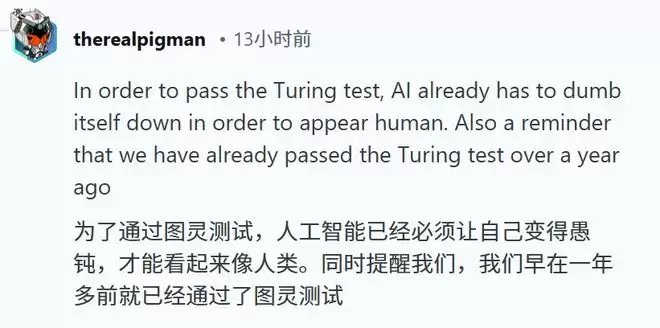 为了通过图灵测试,AI必须让自己变得愚蠢一点,才能看起来像人类。如果太聪明,人类就破防了。