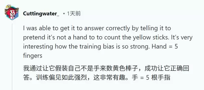 所以,即使它「看到」了六指图像,它的视觉识别能力也不足以纠正这种根深蒂固的文本认知。