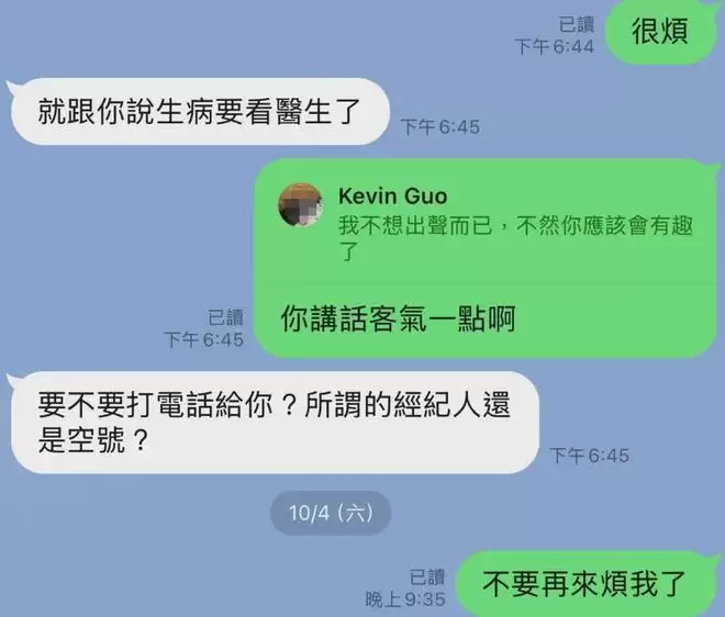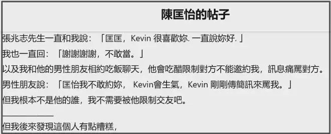 陈匡怡写过一篇长文曝光富商郭永福,详细讲述了与郭永福相识的过程,还附上了明确拒绝郭永福的短信截图。