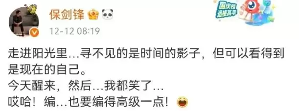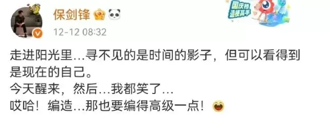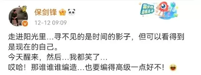 为此,保剑锋特意发了一条微博回应此事,暗指黄慧颐瞎编乱造。上面写着:“编造,也要编得高级一点!”