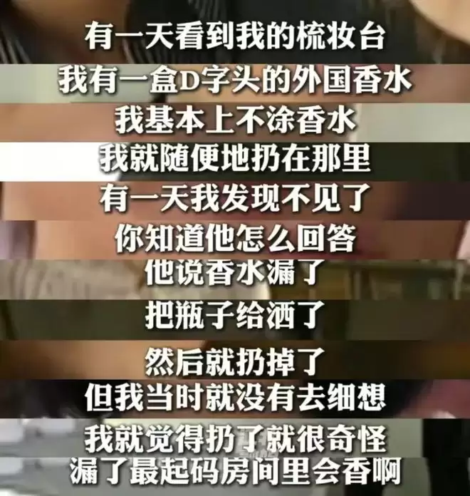 后来,她发现“某女士”晒出同款香水,质疑香水被转增给新欢。这成了压死骆驼的最后一根稻草,让她对这段感情彻底心死。