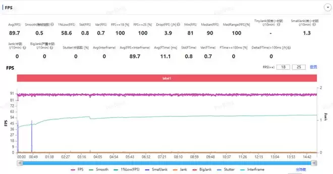 在和平精英中可以开启流畅画质90帧,排位赛平均帧数也达到了89.7FPS,稳帧指数0.5。整体来说相当稳定。