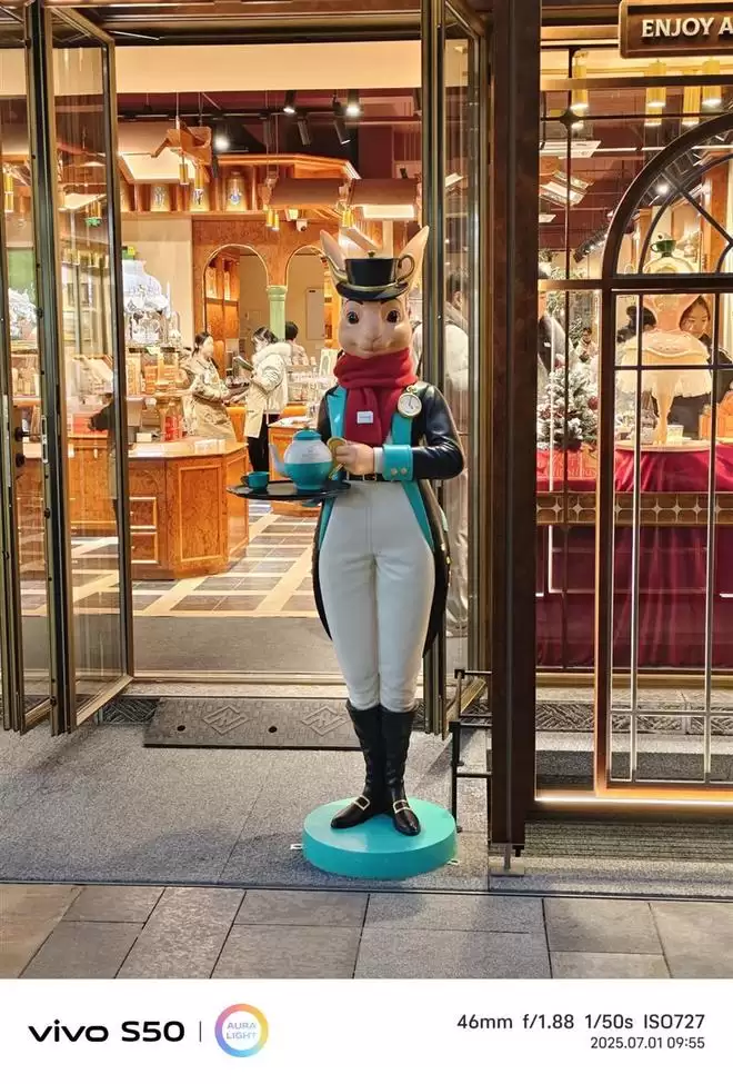 S50的夜景表现堪称绝美,尤其是这张龙兰兔的饰品店。